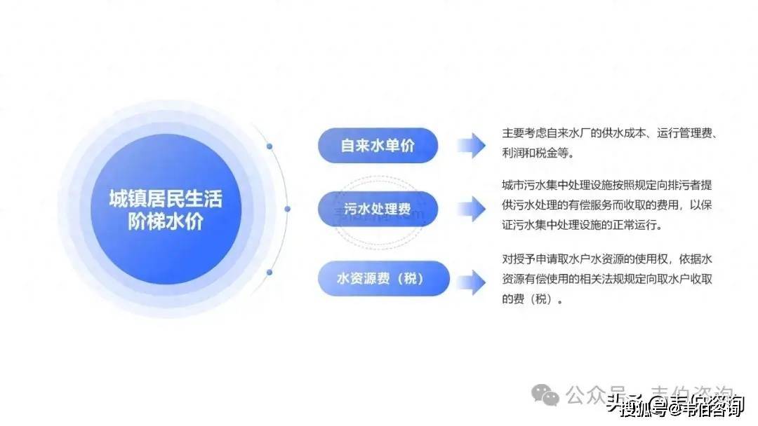 城镇居民生活阶梯水价主要由自来水单价、污水处理费、水资源费(税)、附加费/基金等构成。