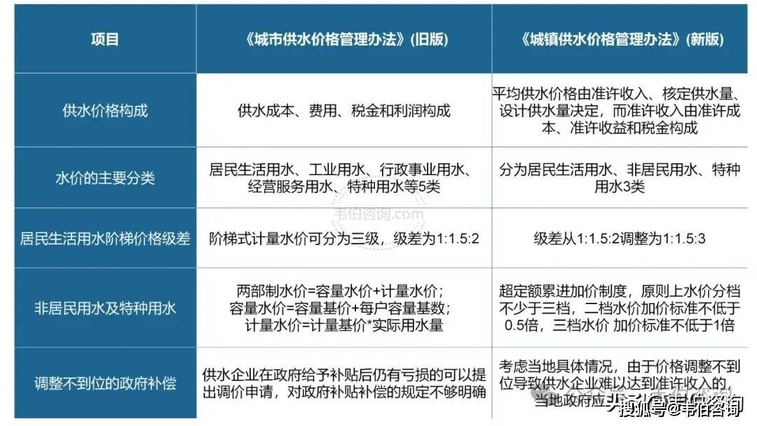 2021年6月,国家发展改革委、住房城乡建设部修订印发《城镇供水价格管理办法》和《城镇供水定价成本监审办法》,自2021年10月1日起施行。相较于《城市供水价格管理办法》(1998年印发,2004年修订),本次《城镇供水价格管理办法》在原先基础上进一步明确了城镇供水价格的定价原则、定价方法、定调价程序,并对水价分类、计价方式等进行了调整。