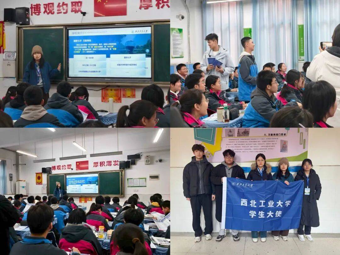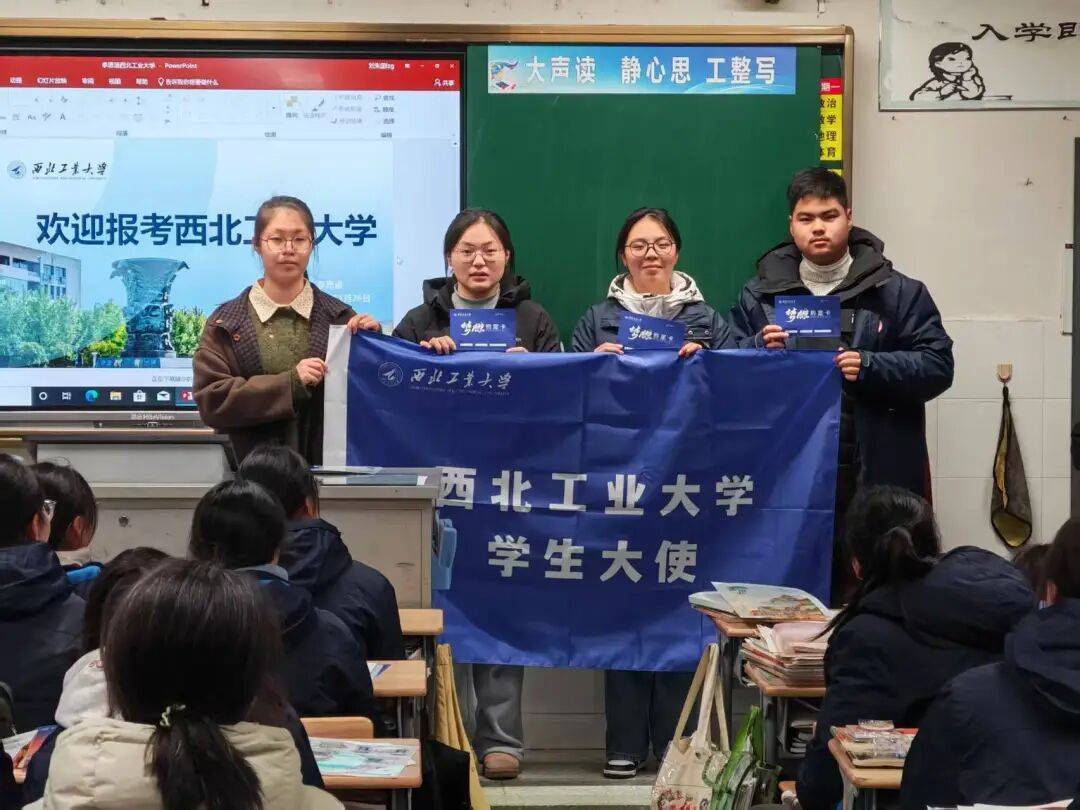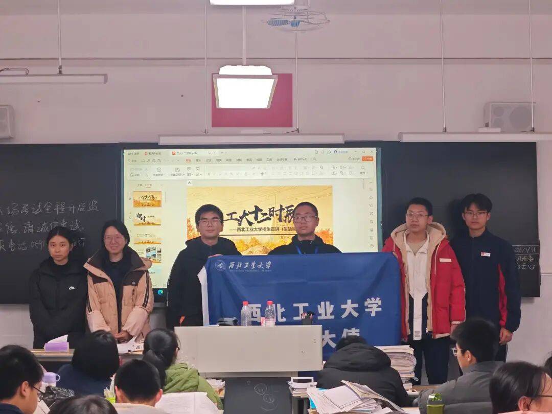 1月26日下午,“工大梦队”前往母校咸阳彩虹学校开展宣讲活动。 首先通过宣传片和讲述,生动展现了西工大三航特色与“总师育人文化”;接着结合自身经历分享校园生活、专业特色与备战高考经验;现场发放了招生资料和校园文创,开展问答交流,为学弟学妹答疑解惑。团队希望通过真诚的讲述,传递西工大魅力,助力学子点燃梦想、奋发前行。