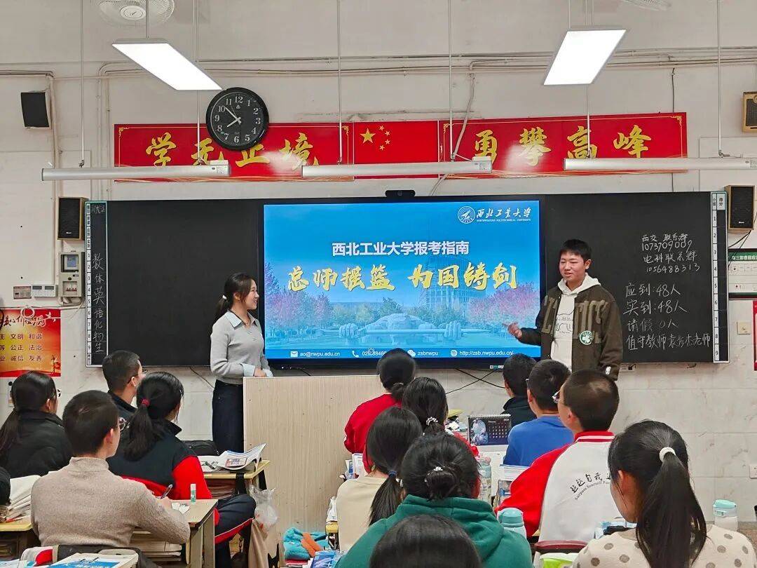 1月25日,“文雅人士”团队赴汉中市龙岗学校开展宣讲。队员首先向学弟学妹们生动讲述一代代西工大人“扎根西部,献身国防”的故事,随后介绍学校历史、办学理念、学科优势等,通过PPT和视频展示特色实力,并设置互动问答环节解答学子关于专业选择、科研方向等各方面的疑问。活动帮助学子们深入了解西工大,明确努力方向。