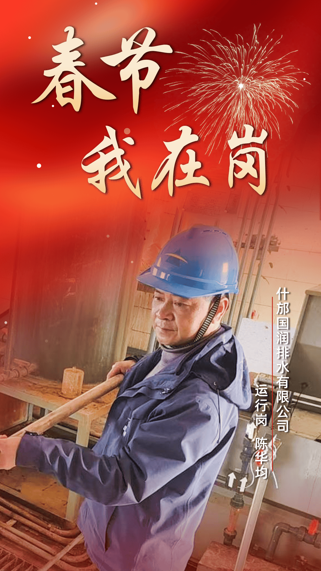 55岁的陈华均,2019年加入什邡国润排水,始终以认真负责、踏实肯干的态度立足岗位。作为一线运行人员,他熟练掌握各项操作流程,严谨细致完成巡检、调控、检测等各项工作。春节坚守对他而言,是职责也是使命,他以沉稳可靠的作风,一人守护厂区平稳运行,用实际行动守护一方清水。