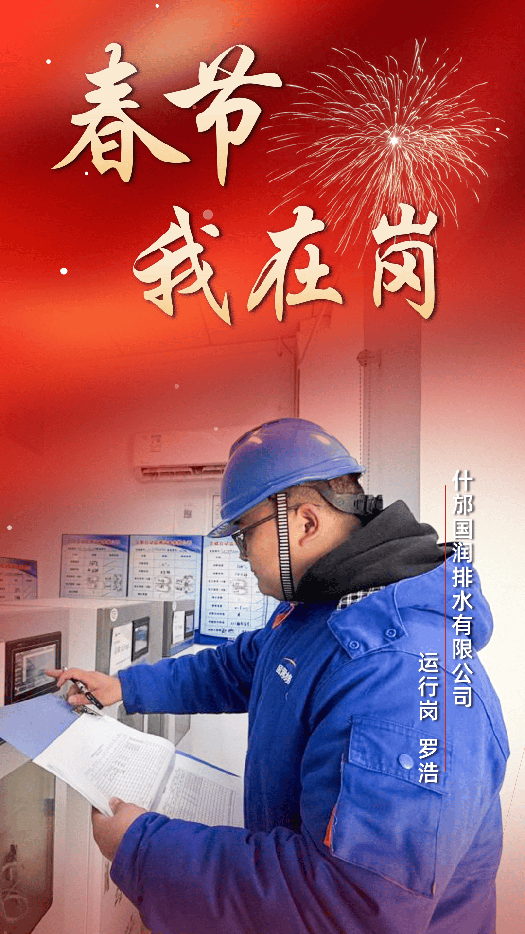 33岁的罗浩是员,也是,2020年加入什邡国润排水,作为蓥华污水处理厂唯一值守人员,他一人扛起全厂运行工作。从格栅清淤、工艺调节到设备巡检、水质检测,每一个环节都由他全程把控。春节期间,他提前备足药剂备件、做好设备保温,白天顶风巡检,夜晚紧盯中控数据,一碗泡面便是年夜饭。他用军人作风与党员初心,确保出水水质持续达标,以实际行动守护节日水环境安全。