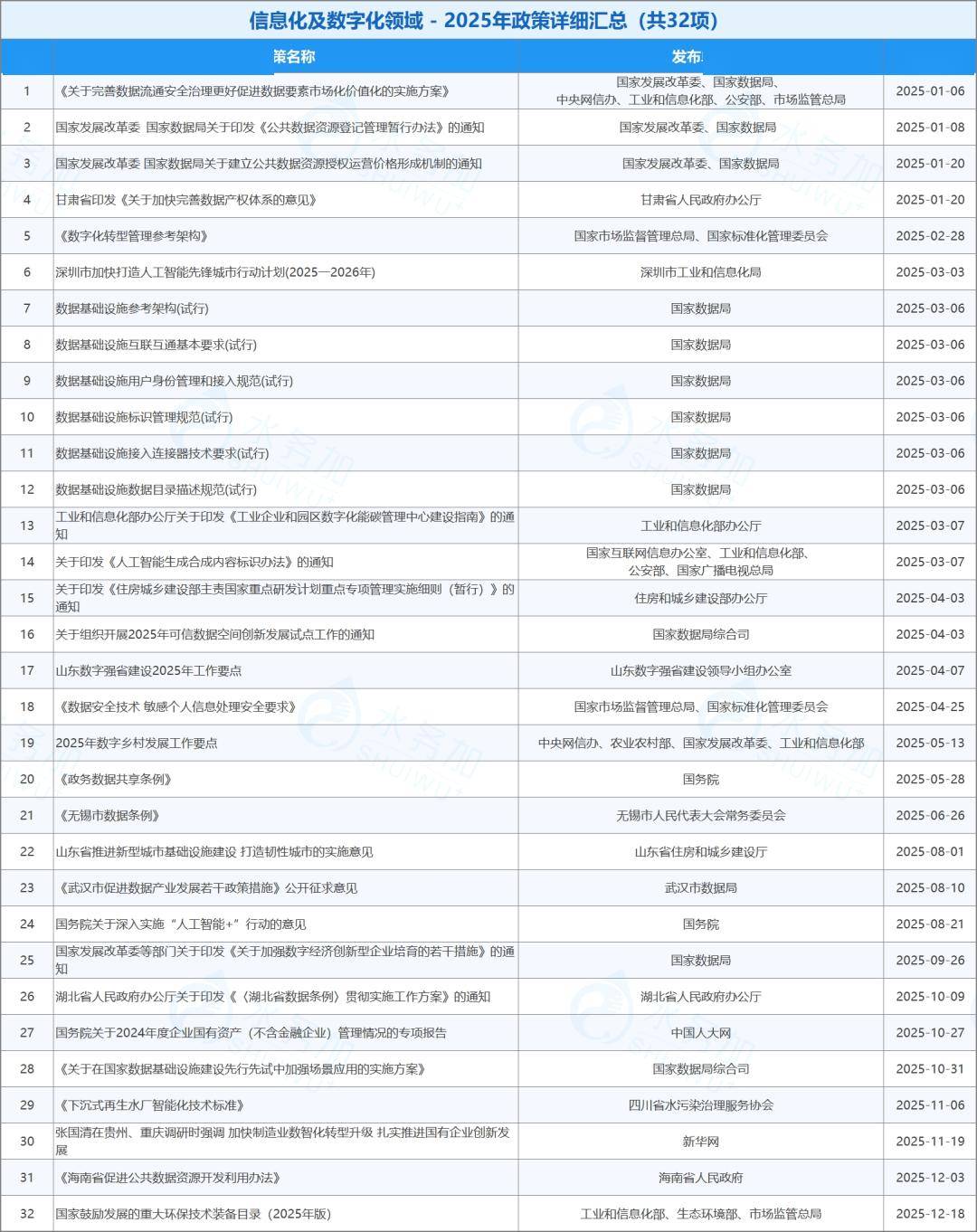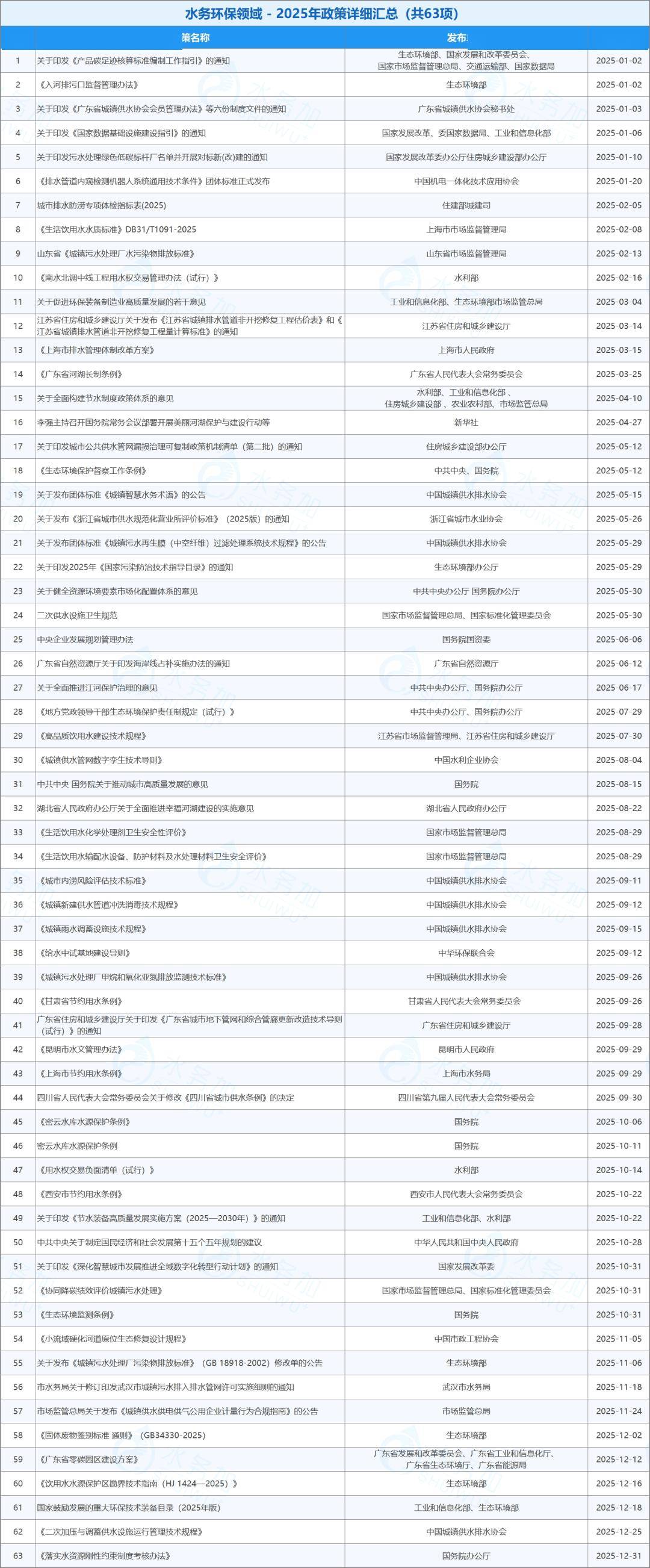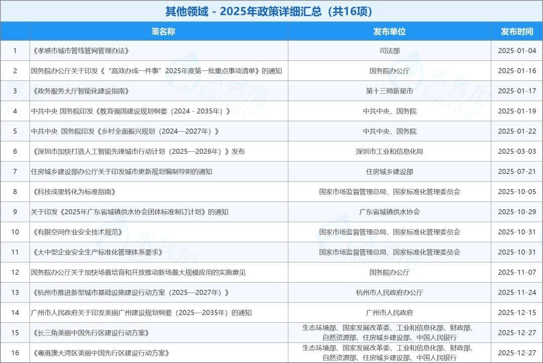 2025年从国家到地方共出台了32项信息化与数字化领域的政策,为水务行业转型提供了关键支撑。
