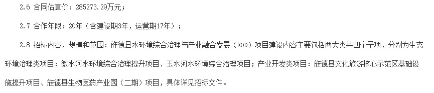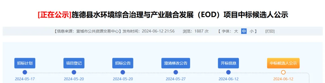 近日,安徽省旌德县水环境综合治理与产业融合发展(EOD)项目中标候选人公示。