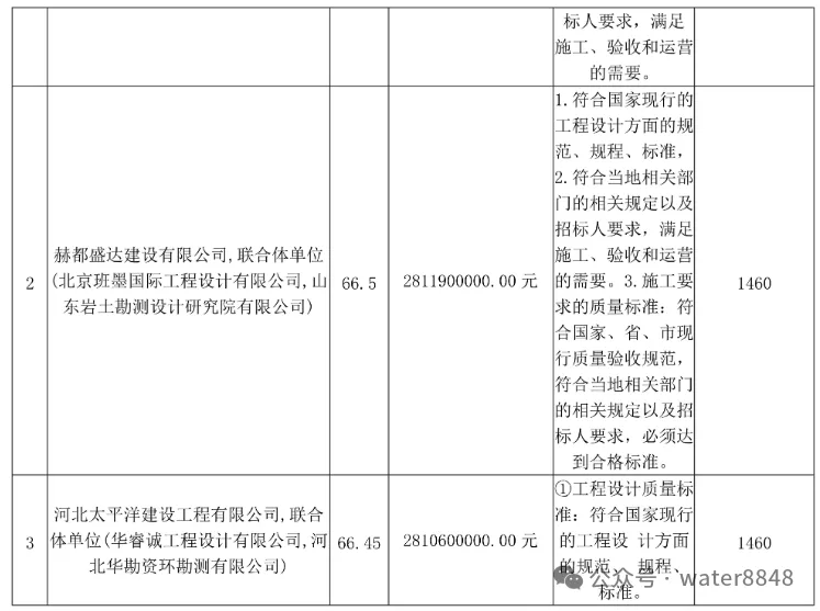 第三中标候选人:河北太平洋建设工程有限公司、华睿诚工程设计有限公司、河北华勘资环勘测有限公司