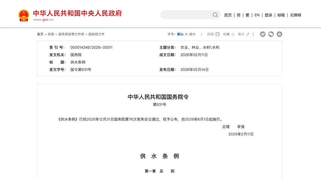 97国际-至尊品牌,源于信誉-2026年2月11日,国务院正式公布《供水条例》(国务院令第831号),标志着我国供水领域32年来最重大的制度重构落地。其中,智慧水务被提到前所未有的高度,成为供水行业合规发展的核心要求。